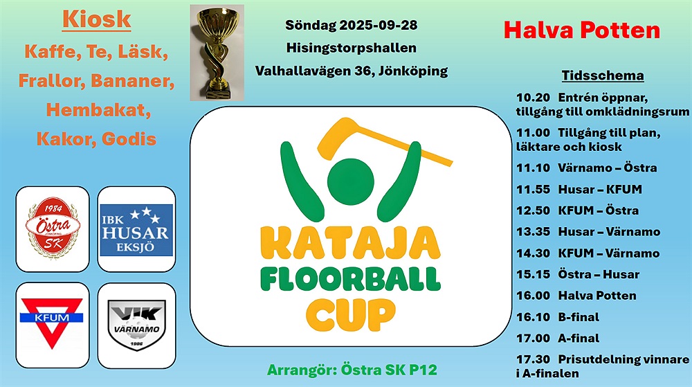 På söndag är det äntligen dags för vår egen Kataja Floorball Cup! Vi hoppas på en rolig dag tillsammans både på och utanför planen 😊
